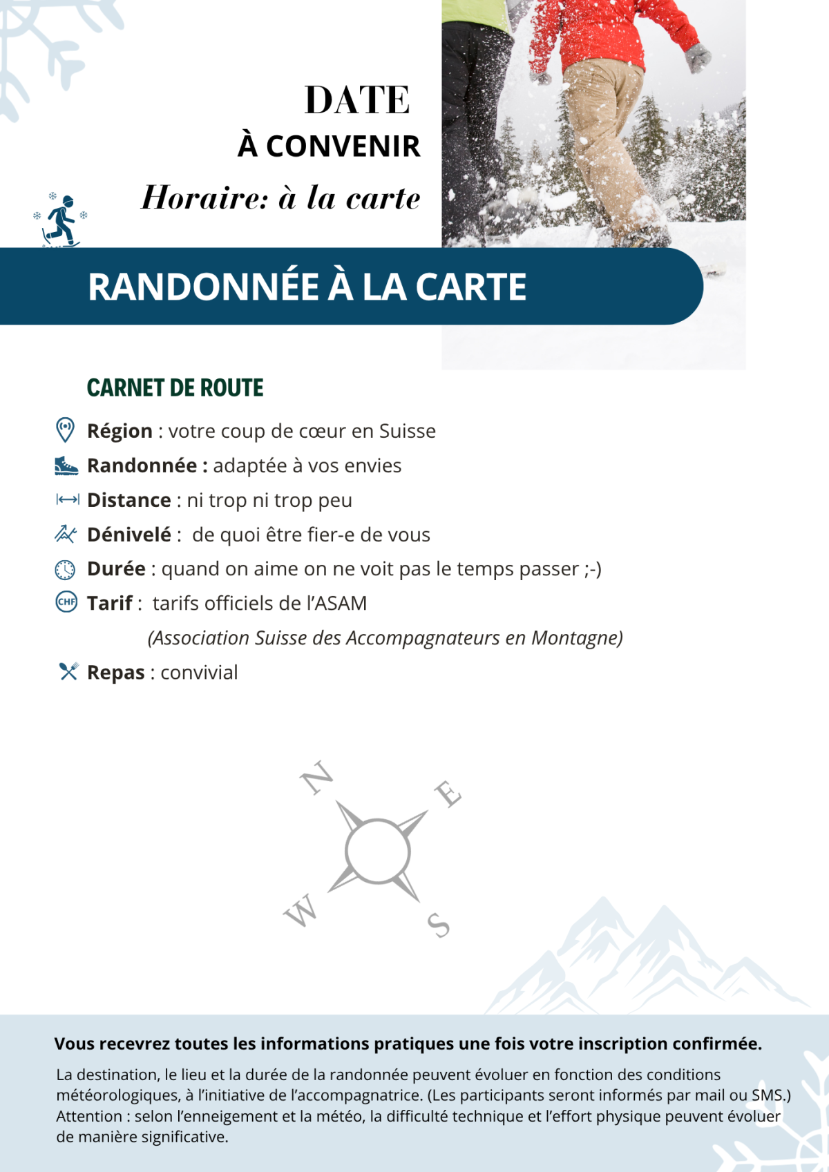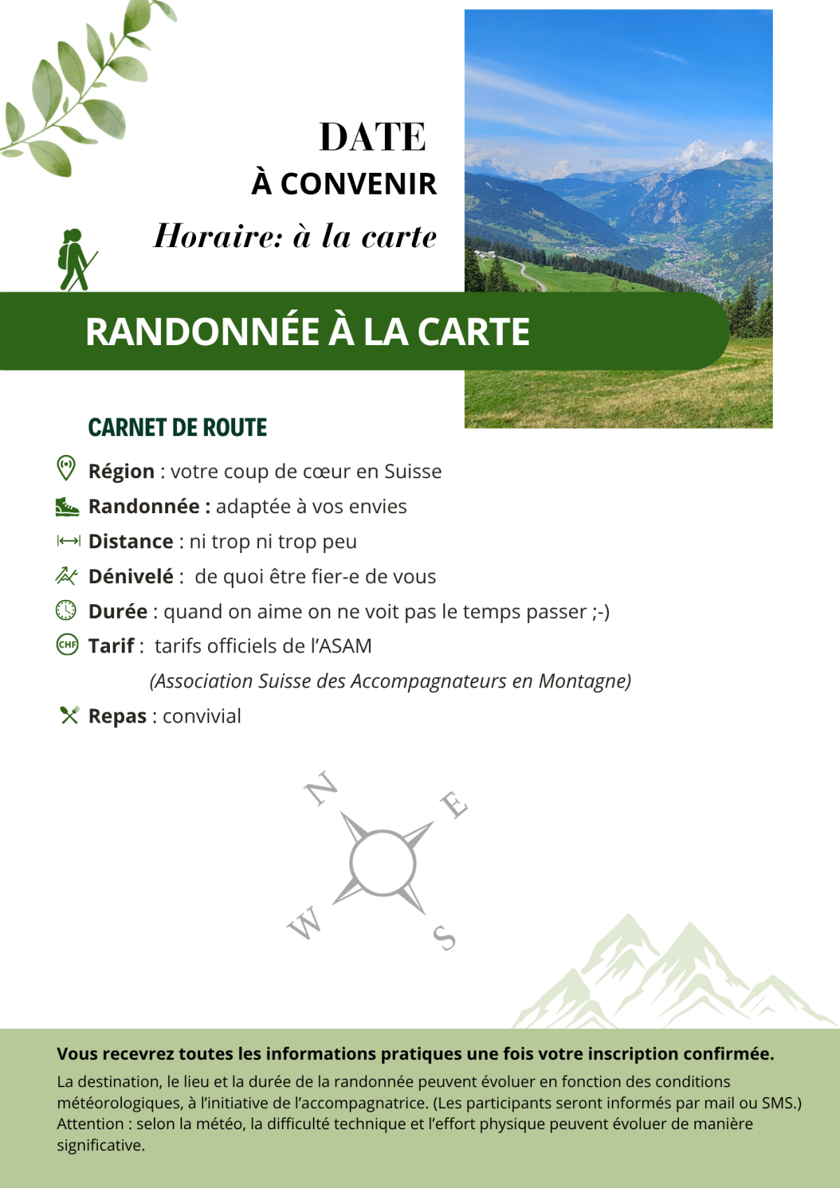 Vous avez envie d’une randonnée personnalisée ? Une sortie à thème ?En famille, entre amis, entre collègues ? Pour un jour, un weekend ou plusieurs semaines ?