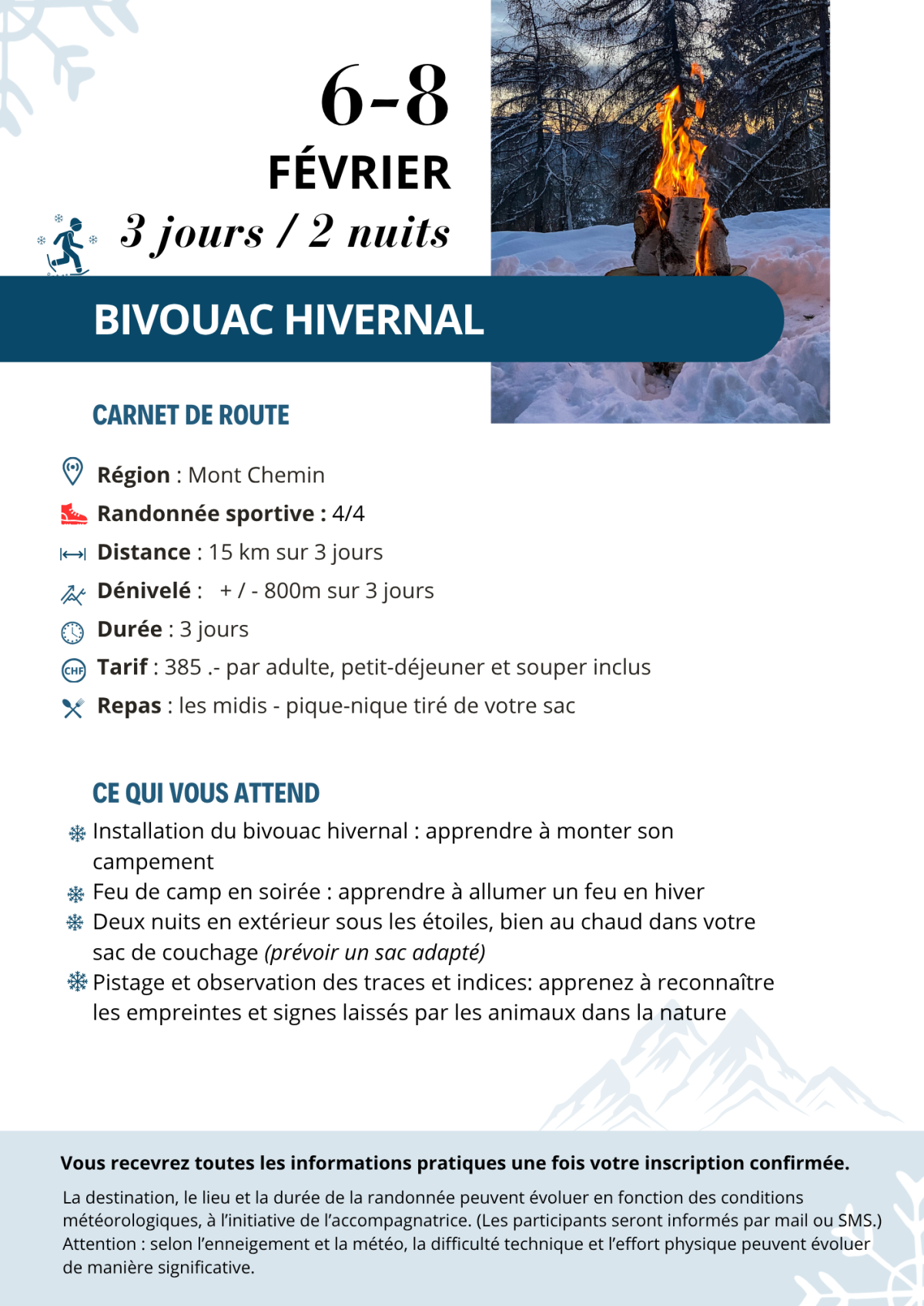 Bivouac hivernal - InscriptionDu 6 au 8 février 2026