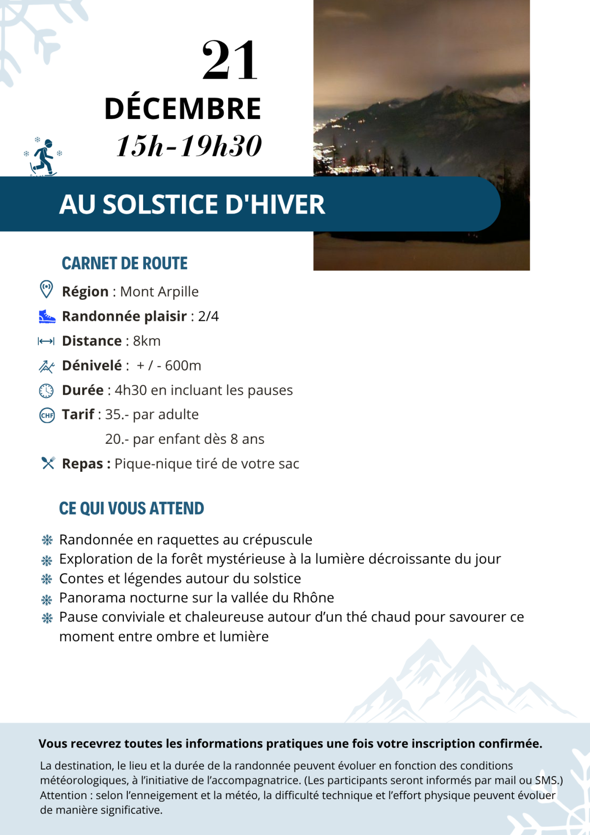 Chaussez vos raquettes et plongez dans l’univers mystérieux de la forêt au crépuscule. Guidés par la lumière décroissante du jour, vous avancerez à travers les paysages silencieux de l’hiver jusqu’au plateau de l’Arpille.